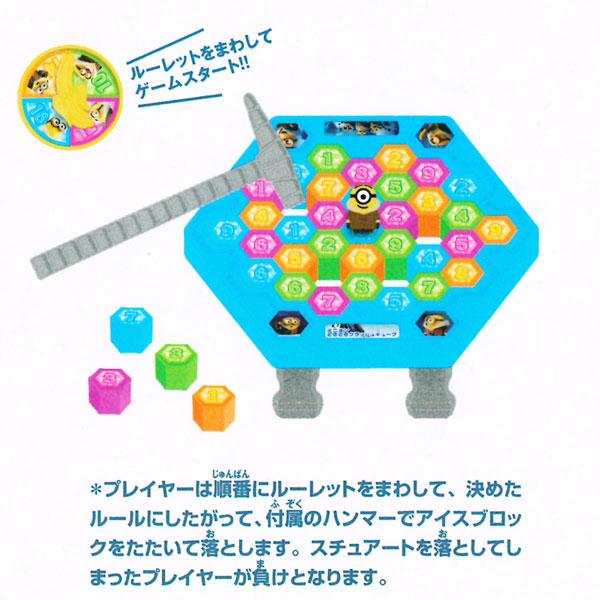 数字で楽しく遊べるおもちゃ♪ルーレットを回して、出た数字に対応する氷をハンマーで叩こう!?真ん中のスチュアートが落ちないように、上手に叩いてね!