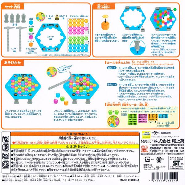 【セット内容】・足×4個・ハンマー×2個・アイスブロック×37個(予備含む)・ルーレット×1個・スチュアート×1個・アイスブロック用シール※セット内容にないものは商品には含まれません。◆パッケージサイズ:約 H25.5×W25.5×D6cm◆対象年齢:3歳以上◆製品材質:PP、PS◆メーカー:株式会社尾上萬※画像と実際の商品は多少異なる場合があります。※ご利用の画面の設定・環境により色が違うように見える場合があります。予めご了承ください。※ご注文の前に必ずお読み下さい※こちらの商品は、初期不良を含むすべてのサポートがメーカーサポートとなります。予めご承知の上、ご購入ください。不具合等ございましたら、直接メーカーへお問い合わせください。