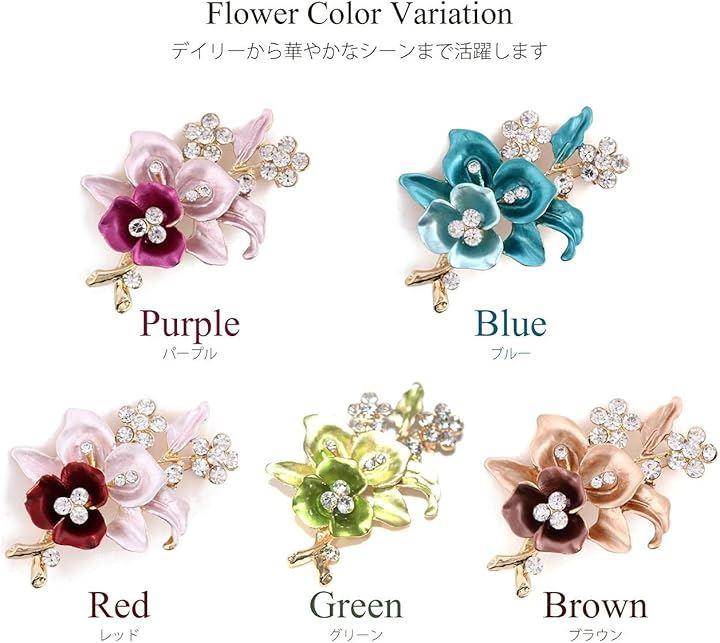 フラワーモチーフブローチは、コサージュほど大げさにならず、さりげなくキュービックジルコニアの輝きが美しいです。
