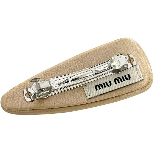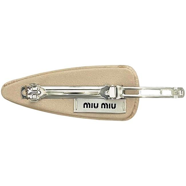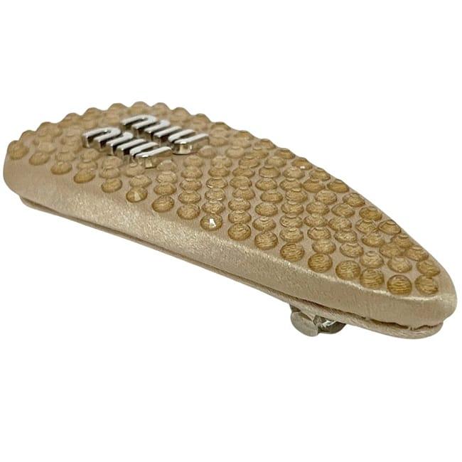 ☆---- 商品について ----☆ミュウミュウ バレッタ f-24386 ベージュ SABBIA STARLIGHT 5IF092 2DDK F0036 美品 サテン ストーン 中古 miu miu ヘアアクセサリー クリップ ラインストーン ロゴ レディース 女性 髪の毛 留め シルバー金具 定番 人気 シンプル ブランド 本物 鑑定済み