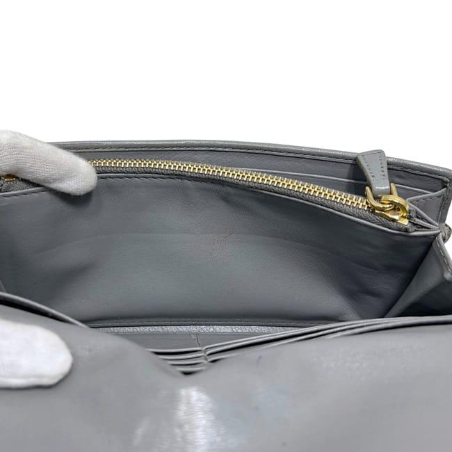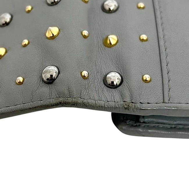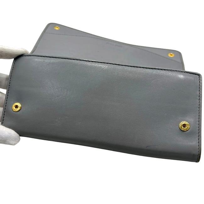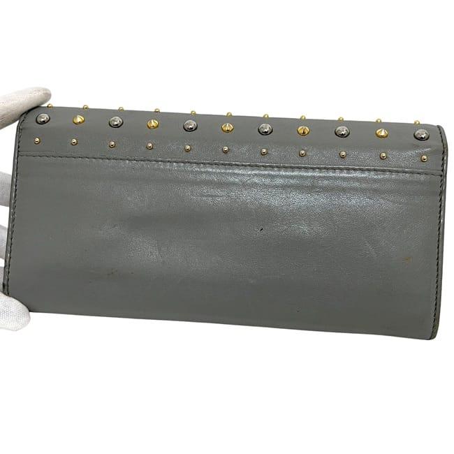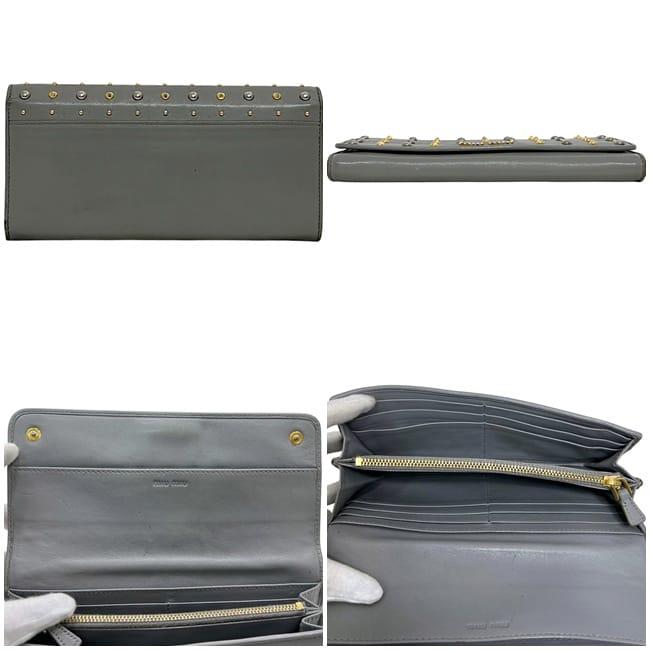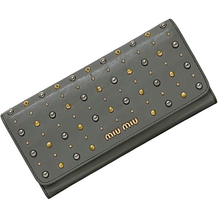 ☆---- 商品について ----☆ミュウミュウ 二つ折り 長財布 ec-24699 グレー NUBE 5M1109 財布 レザー スタッズ 中古 194 miu miu ホック 灰色 ロゴ金具 小銭入れ有 シンプル レディース 女性 定番 人気 シンプル ゴールド金具 小銭入れ有 ヴィンテージ 革財布 ブランド 本物 鑑定済み
