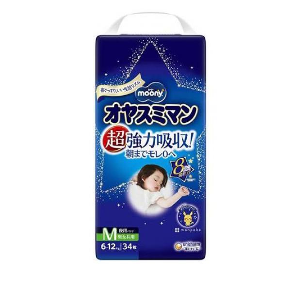 製品の特徴●moony ムーニー オヤスミマン 夜用パンツ 男女共用●Mサイズ(適応体重:6kg~12kg)●超強力吸収で朝までモレゼロへ!●安心の吸収力で夜ぐっすり、朝スッキリ起きていい生活リズム。●おしっこ8回分の吸収力(*)でたっぷりおしっこをしっかり吸収![*1回あたりの尿量40ccとして]●オヤスミマンのフィット構造、足回りの寝返りピタッとギャザーとすっぽりハイウエストで360度モレを徹底ガード。●品名:乳幼児用紙おむつ