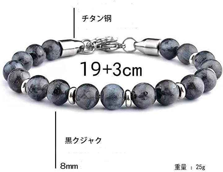 数珠の直径は8mm、ブレスレットの内周は19~22cmです。