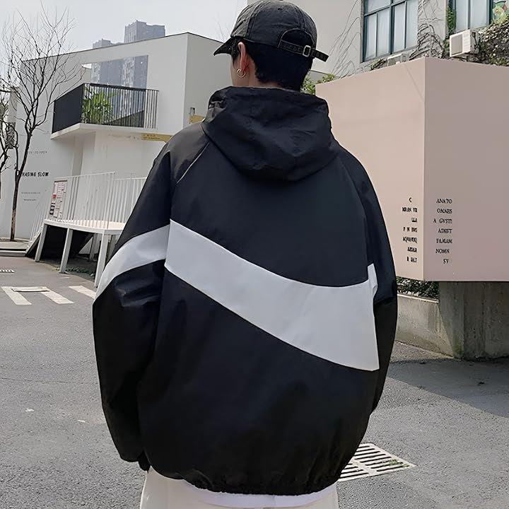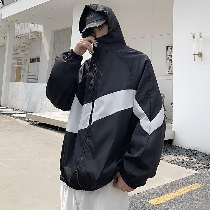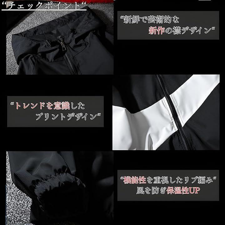「商品説明」 素材: 軽量ポリエステル素材を採用し、快適な着心地と防風性能を実現、日常使いからアウトドアまで活躍できる持っていて困らない一枚。。 デザイン性: モダンなカラーブロックデザインと機能的なフード付きジップアップスタイル、定番のブラックとグレーの2色展開です。