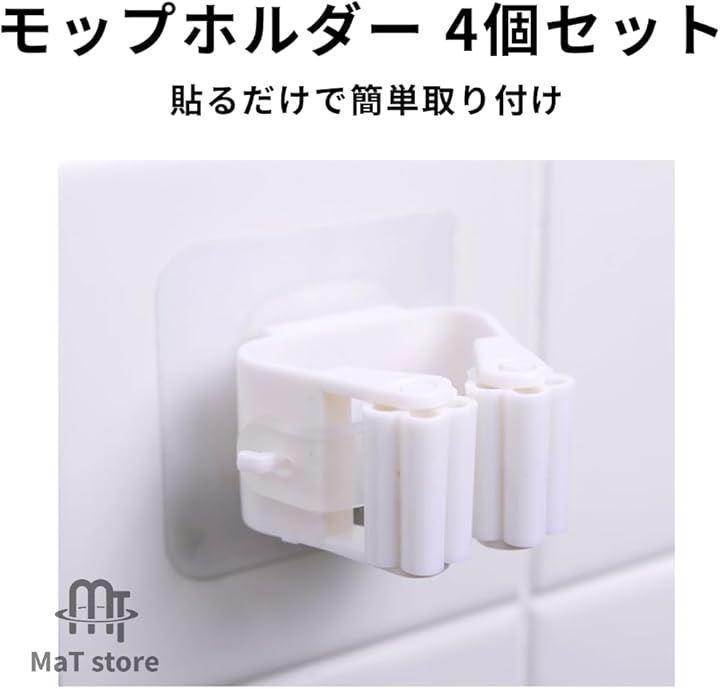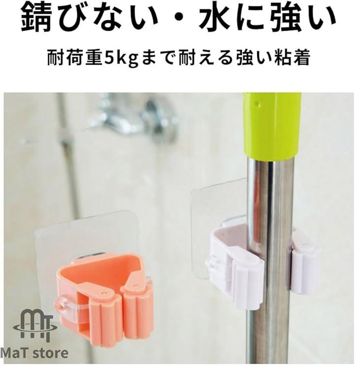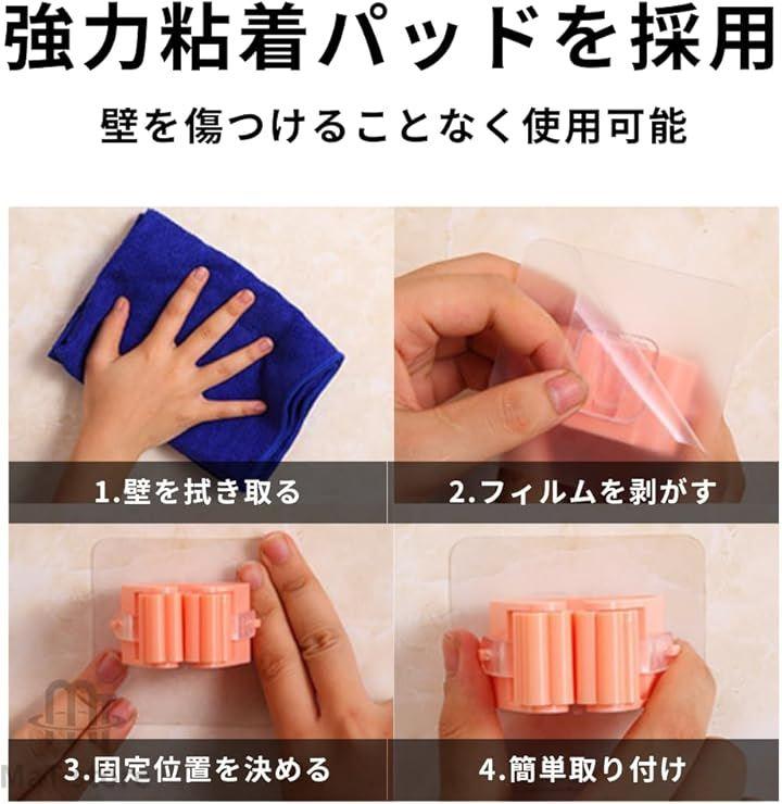 「貼るだけで簡単取り付け」強力粘着パットで貼り付けるだけの簡単設置なモップホルダーです。