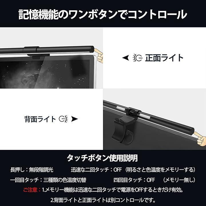 モニタ掛け式ライトには調光機能・調色機能は搭載されています。