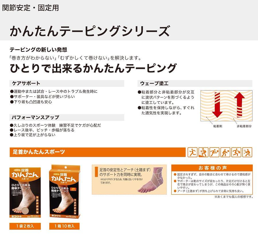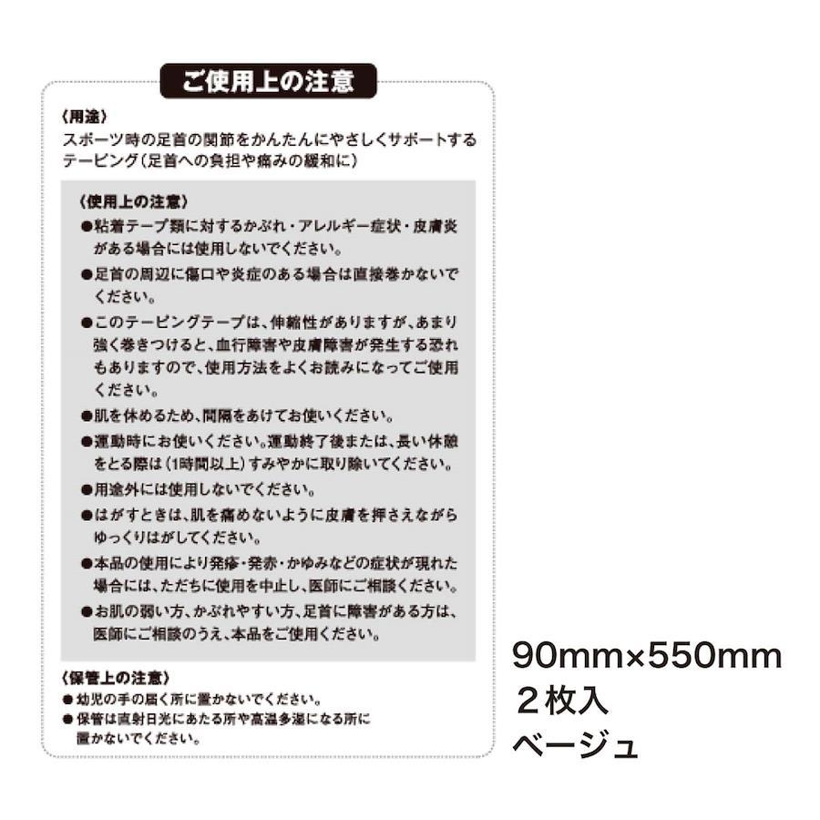 JAAF日本陸上競技連盟オフィシャルテープ初通気性が優れ、長時間の使用にもかぶれにくい初心者でも簡単に巻けるようにプレカットされた製品商品の概要・関節の固定により動きの安定性を向上正しい動きを誘導推奨する使用場面・長時間足首を使うスポーツ・レジャー活動(ジョギング、マラソンなど)・激しい動きで足首に負担が掛かるスポーツ(サッカー、バスケットなど)・ジャンプ動作を伴い足首に強い力が働く動作(バレーボール、陸上など)注意事項※肌の弱い人、荒れ性の人は使用しないで下さい。本品の使用により、皮膚に異常があらわれた場合は使用を中止し、医師にご相談下さい。また、傷などのある場所には使用しないで下さい。 幅:90mm 長さ:55cm 入数:2枚 基材:綿 粘着剤:アクリル系粘着剤 生産国:日本