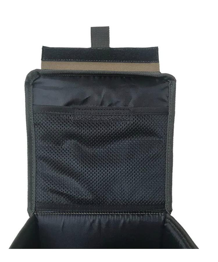 マルチギアコンテナと同じクッション材を使っており、ランタンをしっかり保護します。表面は撥水加工、裏面はPVCコーティングでオイルの汚れもふき取りやすいです。ファスナー全開でコンパクトに折りたためます。ベルクロテープ1本付けてぐらつきを防止、上蓋内部にメッシュポケット付き、サイズ ベアボーンズレイルロードランタンなどが適応します。-