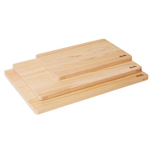 国産ヒノキ材のまな板。反り止め防止加工もついているので反りづらく、ひのき特有の包丁の刃にもやさしい作りです。