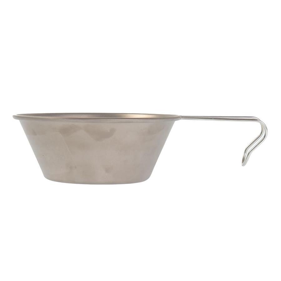 軽量でさびにも強いチタン製のシェラカップ。お米も量れる目盛り付きです。スタッキングできてかさばらず、直接火にかけて簡単な調理も可能です。