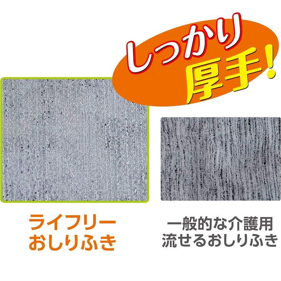 ライフリー おしりふきトイレに流せる 72枚 ×2セットブランド ライフリーユニット数 144 枚商品の個数 2商品の形状 ワイプ原産国:日本●厚手素材でしっかり拭ける! トイレに流せるタイプのおしりふき。●繊維のスキマの少ない厚手素材を採用したので、手を汚す心配も無くしっかり拭き取ることができます。
