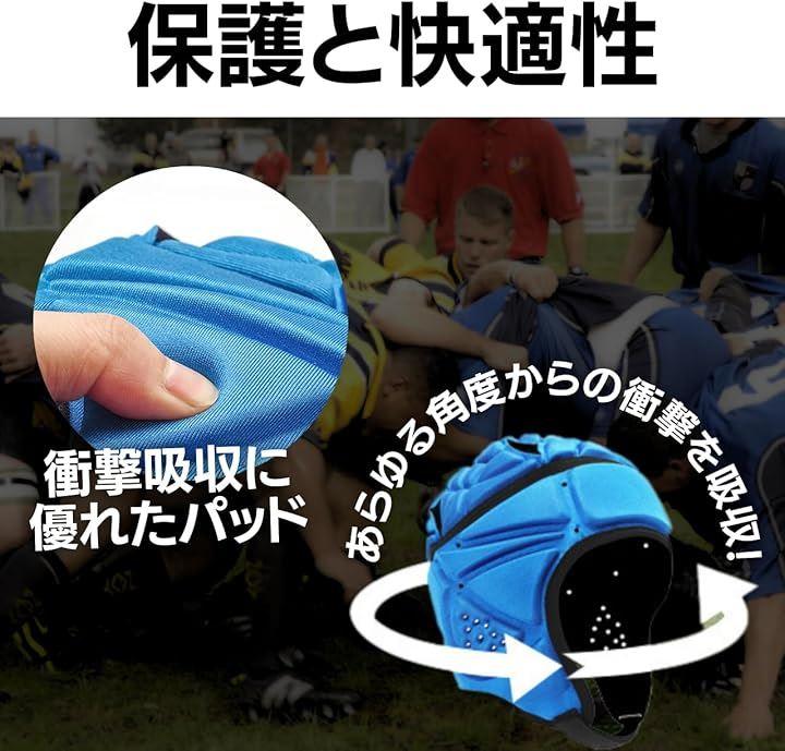 衝撃吸収性に優れたパッドが頭部を守り、ラグビーやコンタクトスポーツでの怪我のリスクを軽減します。