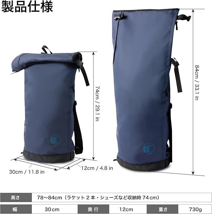 「仕 様」 幅:30cm 奥行:12cm 高さ:84cm(折ってバックルで留めると74cm) 重量:730g ポケットサイズ:39x35、30x35cm