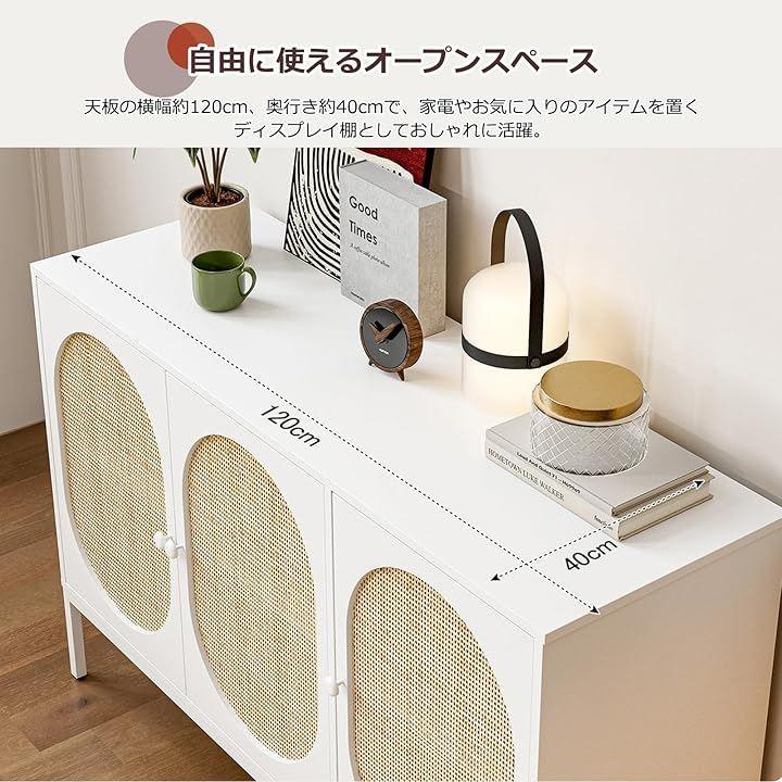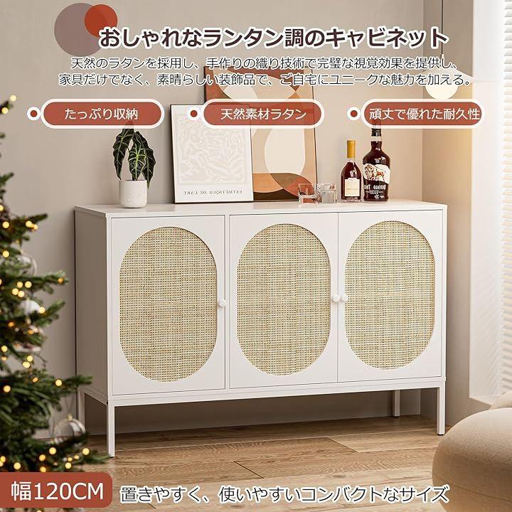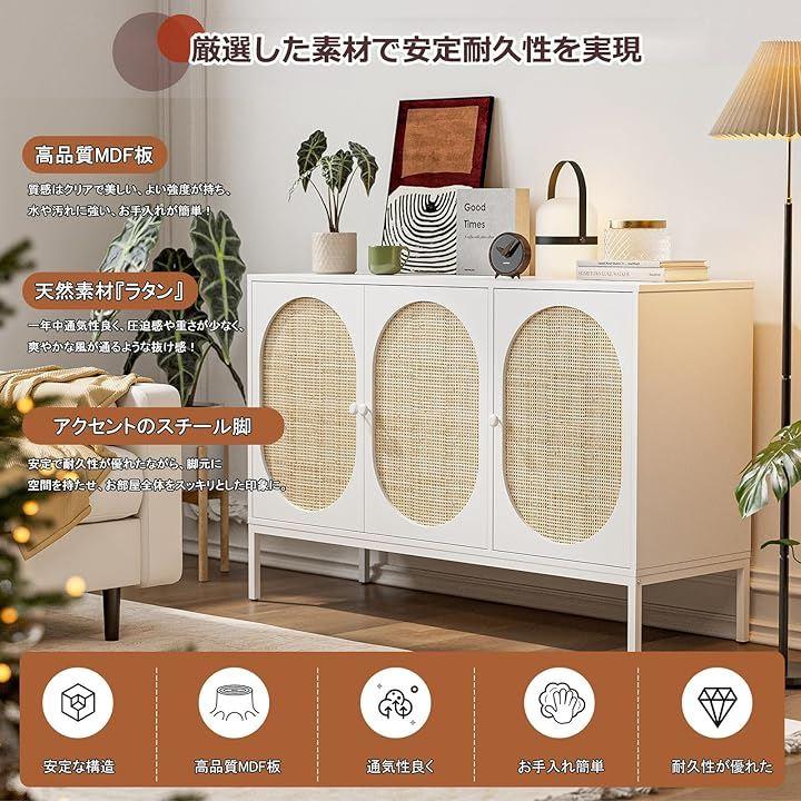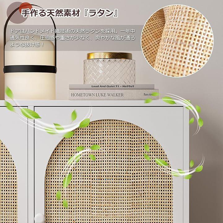 「天然素材ラタンおしゃれなキャビネット」サイドボードは天然ラタンと手織り技術で作られて、一面が木材の家具に比べて圧迫感や重さが少なく、爽やかな風が通るような抜け感を感じていただけます。