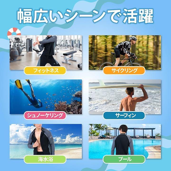 「水陸両用&幅広いシーンで活躍」吸汗・速乾素材で、スポーツやフィットネス、サイクリング、スイミング、サーフィン、ダイビング、海水浴、プール、ビーチ、温泉など幅広いシーンで使用可能。