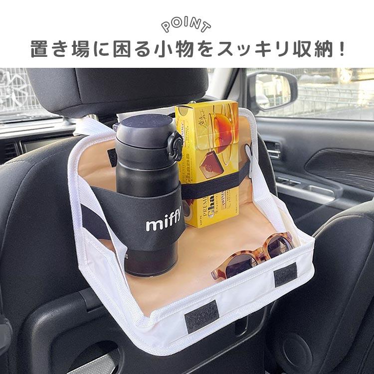 【リアトレイ】車のヘッドレストに取り付けられる、ミッフィーデザインのリアトレイ!飲み物やお菓子、サングラスなどをサッと置けてとっても便利。使わないときは折りたたんでスッキリ収納できます◎ミッフィーの顔がかわいくて、車内の雰囲気も和む♪お出かけや長距離ドライブのお供にぴったりのアイテムです♪