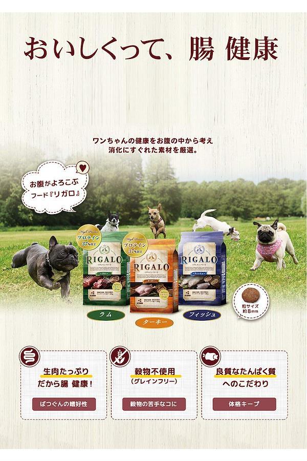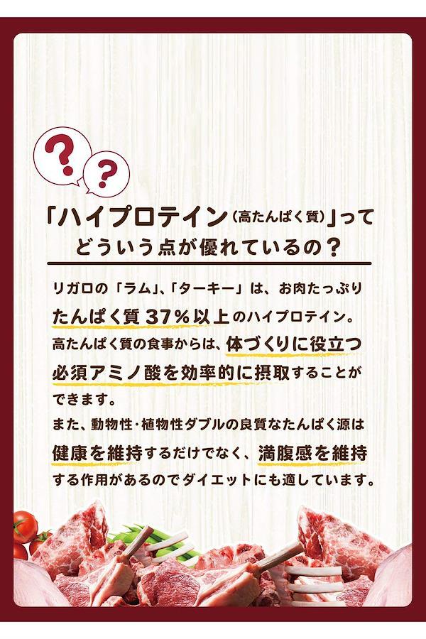 RIGALO(リガロ)グレインフリー ハイプロテイン ラムは、アミノ酸バランスに優れた良質なたんぱく質を豊富に含んだ穀物不使用のドッグフードです。ラム肉は、体重が気になる子にはうれしい「L-カルニチン」を食肉では一番多く含んでいます。さらにコレステロール値も低く、ビタミン・ミネラルを豊富に含みます。プロテイン37%以上。 リガロはワンちゃんのお腹の健康を大切に考え、ワンちゃん本来の理想的な食事をとことん追求しました。 ・原材料 ラム、サーモンミール、ラムミール、乾燥エンドウマメ、乾燥ヒヨコマメ、エンドウマメプロテイン、乾燥ジャガイモ、ヒマワリ油※、天然フレーバー、乾燥トマト繊維、乾燥サツマイモ、乾燥ビール酵母、ひきわりフラックスシード、乾燥チコリ根(イヌリナーゼとフラクトオリゴ糖源)、タウリン、加水分解酵母(マンナンオリゴ糖源)、ユッカフォーム抽出物、ミネラル類(塩化カリウム、食塩、亜鉛、鉄、銅、コバルト、マンガン、セレニウム酵母、ヨウ素酸カルシウム)、ビタミン類(塩化コリン、L-アスコルビン酸-2-ポリリン酸塩(ビタミンC源)、ビタミンE補助食品、ナイアシン、硝酸チアミン、d-パント