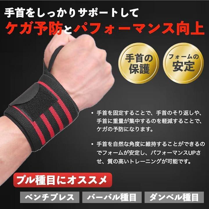 手首に巻いて固定することで、ベンチプレスなどの筋トレ時に安定感が増し、効率よくトレーニングできます。