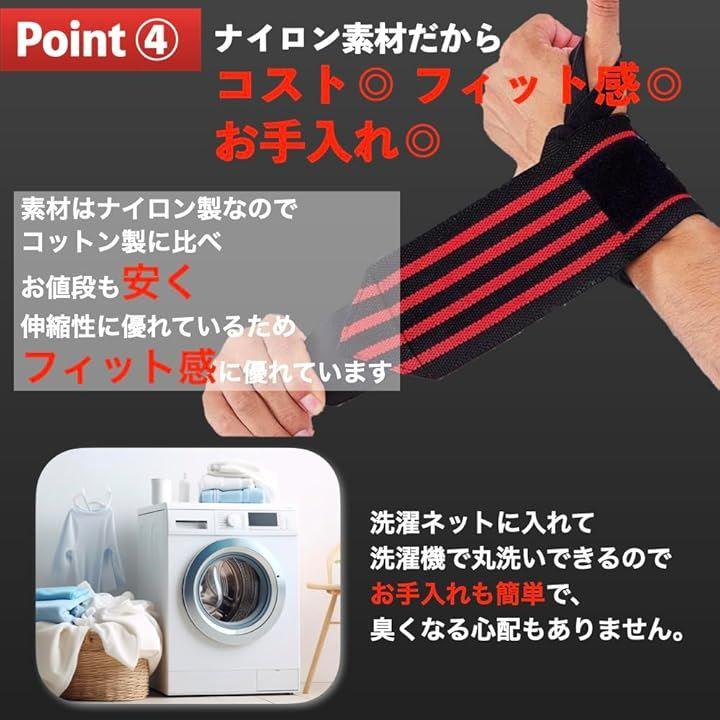 「コストパフォーマンスの高いナイロン素材」耐久性にも優れ、柔軟性、伸縮性に優れ、快適なフィット感で手首をしっかりと固定します。