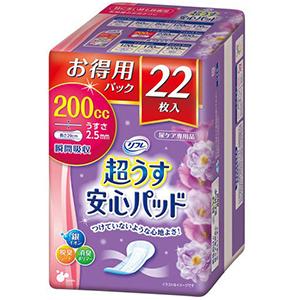 ■商品概要メーカー:リブドゥコーポレーション商品名:リフレ 超うす安心パッド 200cc お得用パック(22枚入)区分:日用雑貨内容量:22枚商品概要:【尿もれ・軽失禁用】超うす2.5mmでつけていないような心地よさ!JANコード:4904585035784商品コード:117803077