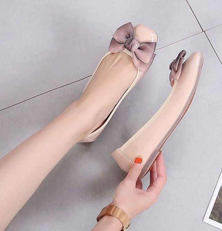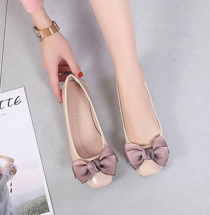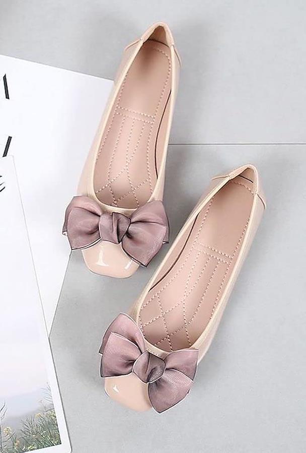 リボン付きが可愛らしい、晴れ雨兼用フラットパンプス。