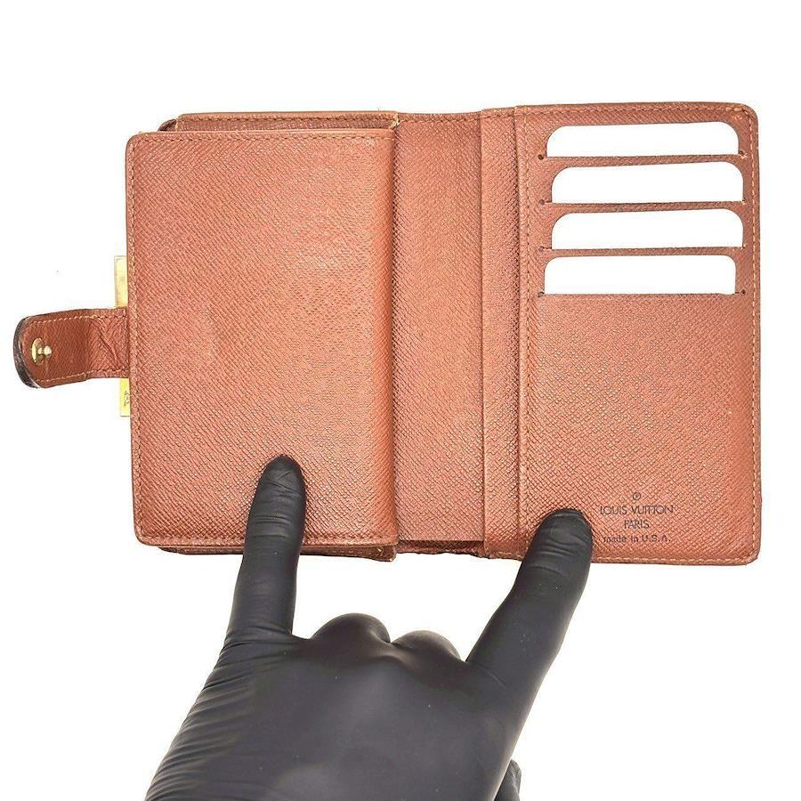 【商品説明】上品なブラウンに映えるルイヴィトンのモノグラム二つ折り財布。がま口式で小銭も取り出しやすく、カードポケットも充実。品格と実用性を兼ね備えた、永く愛される逸品です。毎日の生活を華やかに彩ります。