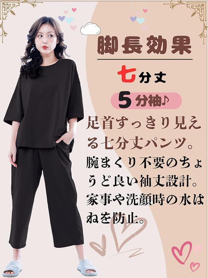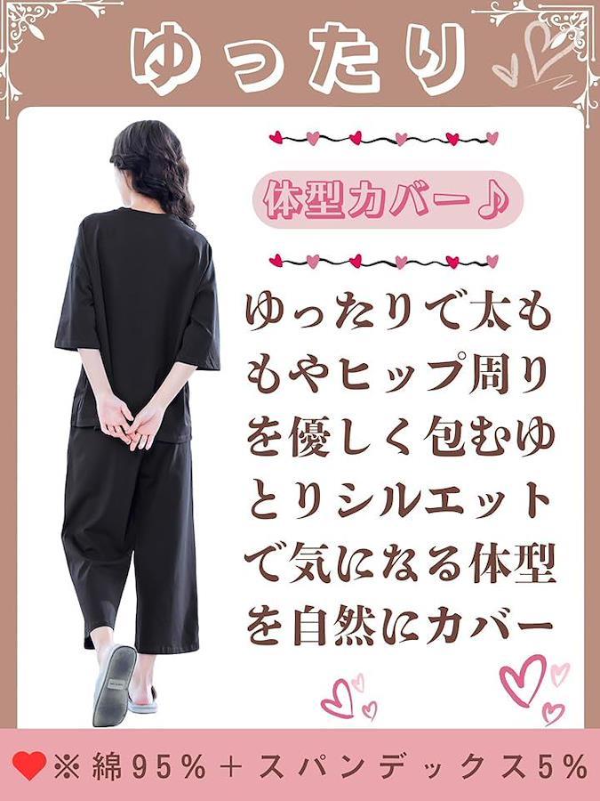 緩いウエストゴム仕様で、食事後や生理期でもお腹を圧迫せず、就寝時はもちろん、リビングでのくつろぎタイムにも最適。