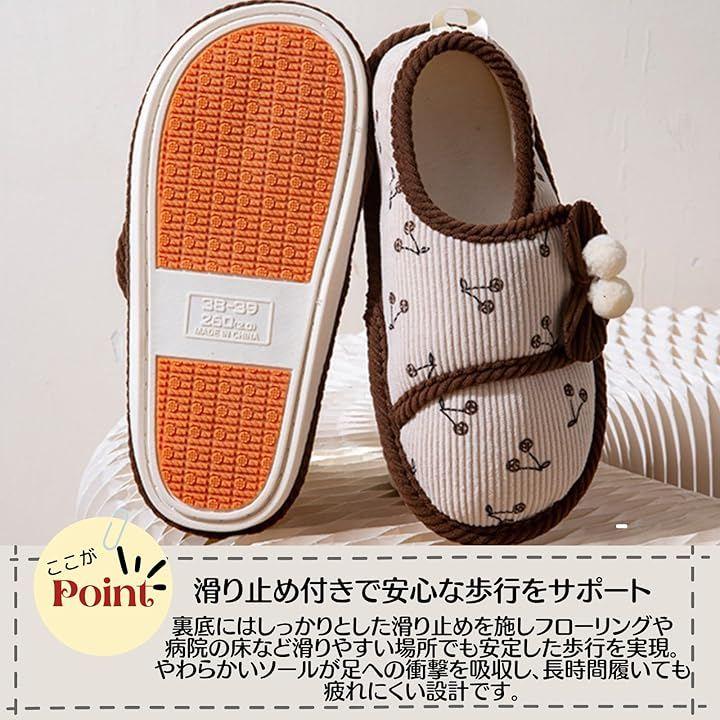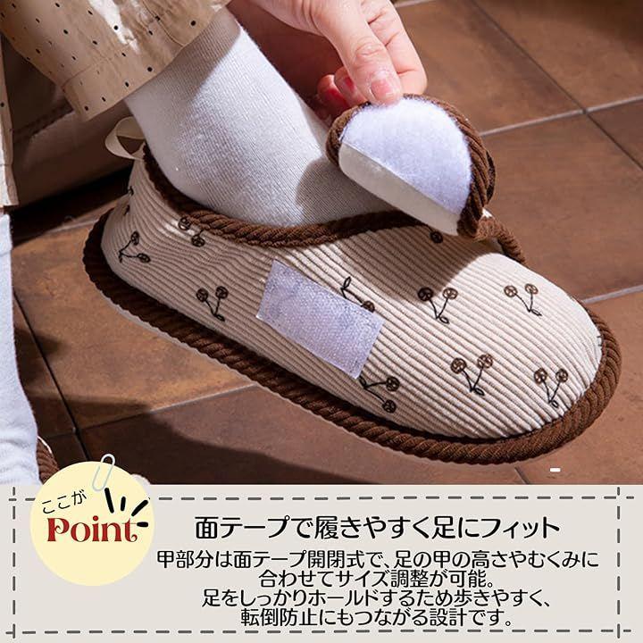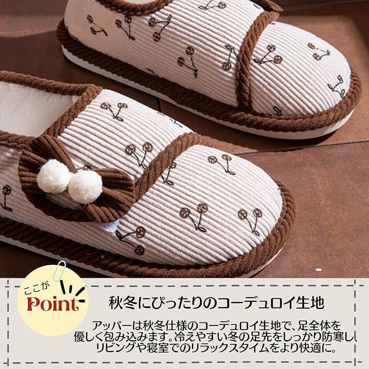 「秋冬にぴったりのあったかコーデュロイ生地ルームシューズ」本商品は、秋冬シーズンの室内履きに最適なレディースルームシューズ。