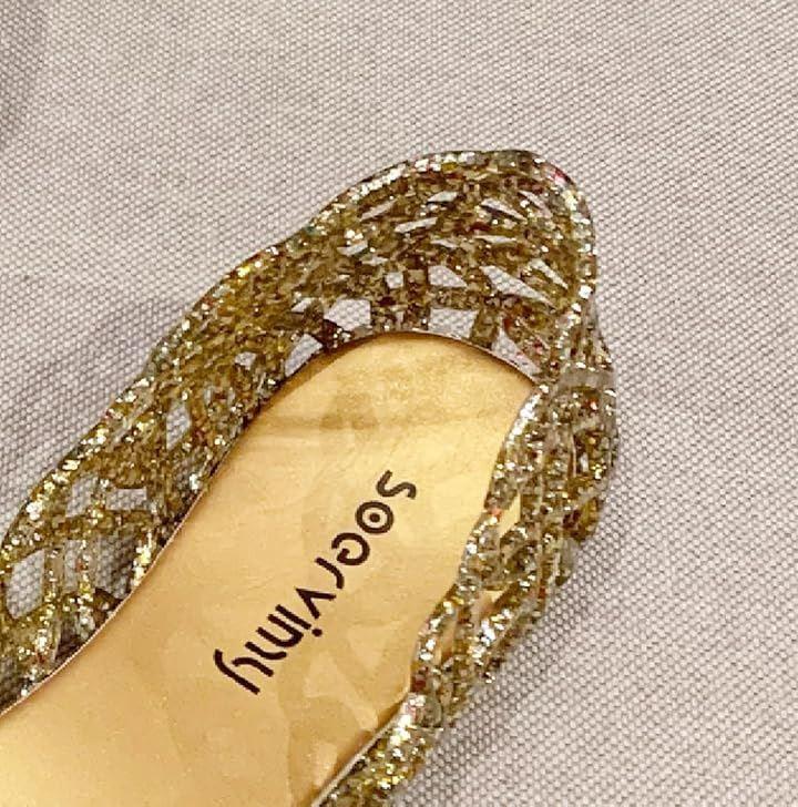 編みのデザインが特徴的で、涼し気な印象のラメラバーメッシュパンプス。