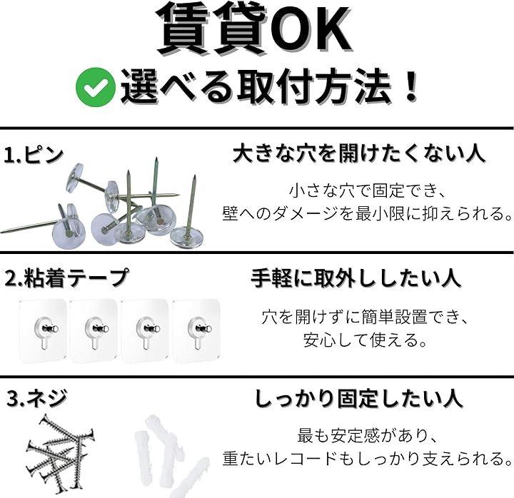 取り付け方法がピン、ネジ、テープの3つから選べるため、壁を傷つけずに簡単に設置できます。