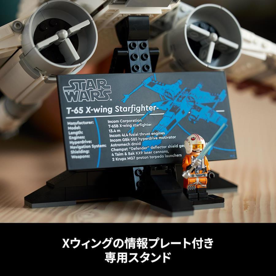 スター・ウォーズ旧三部作や実写ドラマ『マンダロリアン』のスリルあふれるアクションシーンを再現しよう。レゴ(R)スター・ウォーズ Xウィング・スターファイター(75355)は、開閉式コックピットやR2-D2ドロイドの収容ソケットから、飛行モードと攻撃モードの切り替えができるスイッチまでリアルを極めたレプリカモデルです。 ディスプレイモデル Xウィング・スターファイターは長さ約55cm。情報プレート付き専用スタンドにライトセーバーを構えた「ルーク・スカイウォーカー」のミニフィギュア(2023年5月バージョン)と並べて飾れば、注目を集めること請け合いです。 LEGO Builderアプリ すぐれた品質の大人向けスター・ウォーズコレクションは、ご自分へのごほうびはもちろん、スター・ウォーズファンや経験豊かなレゴビルダーによろこばれるギフトです。わかりやすいイラスト入り組み立て説明書が付属していますが、LEGO(R) Builderアプリをダウンロードすれば、ズームや回転の表示ツールを使って、高度なモデルもスムーズに組み立てられます。
