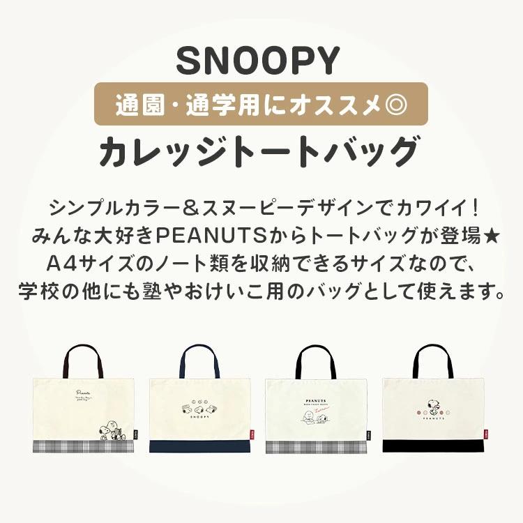 【カレッジトートバッグ】シンプルカラー&スヌーピーデザインでカワイイ!みんな大好きPEANUTSからトートバッグが登場★A4サイズのノート類を収納できるサイズなので、学校の他にも塾やおけいこ用のバッグとして使えます。