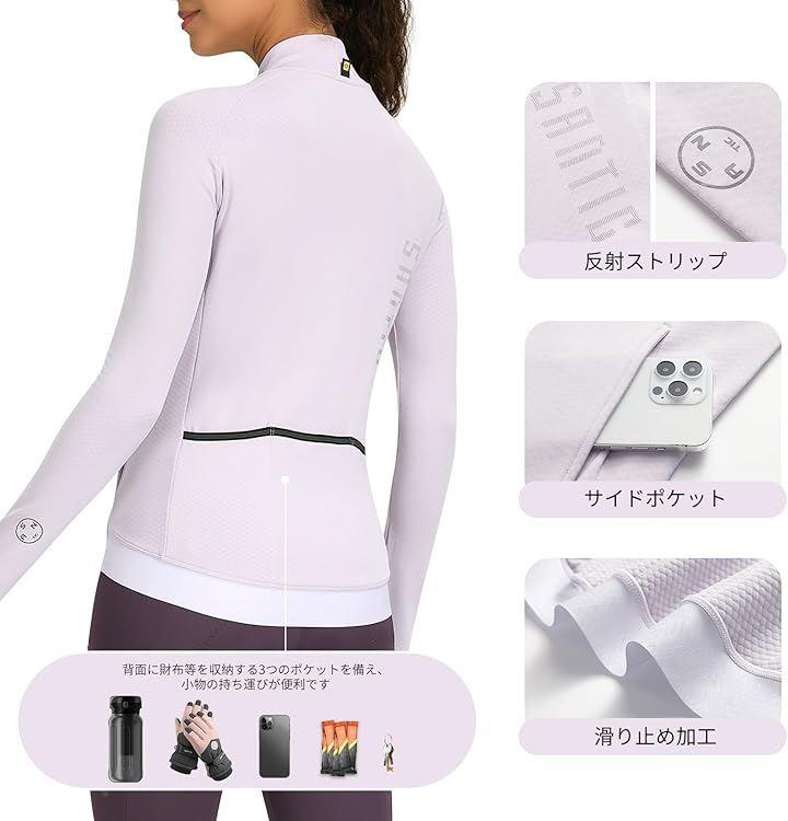 前傾姿勢や腕を前に伸ばす自転車を考慮し、背中を長くなって、肩周りをストレッチに作られています。