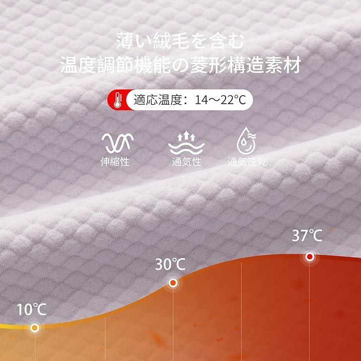 「裏起毛素材」全新薄い絨毛を含む温度調節機能の菱形構造素材(着用適温:14~22℃)、伸縮性と通気性に優れ、湿気除去と急速乾燥性能を備えた質地です。