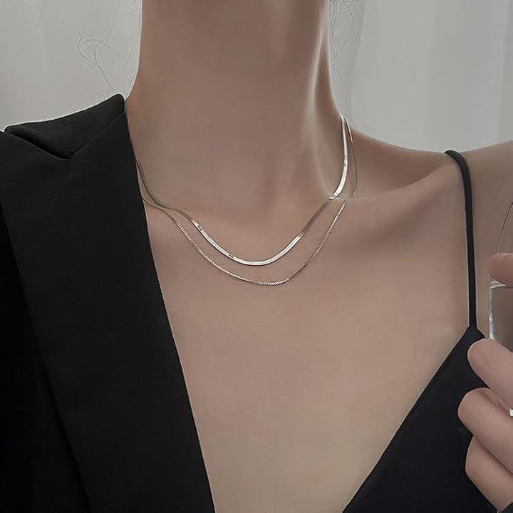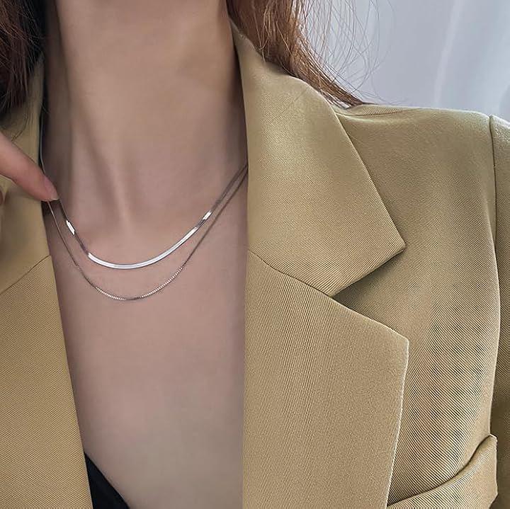「デザイン」シンプルでありながら、上品にまとまる重ね付けタイプの一体型 二連チェーンネックレス。