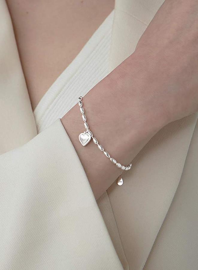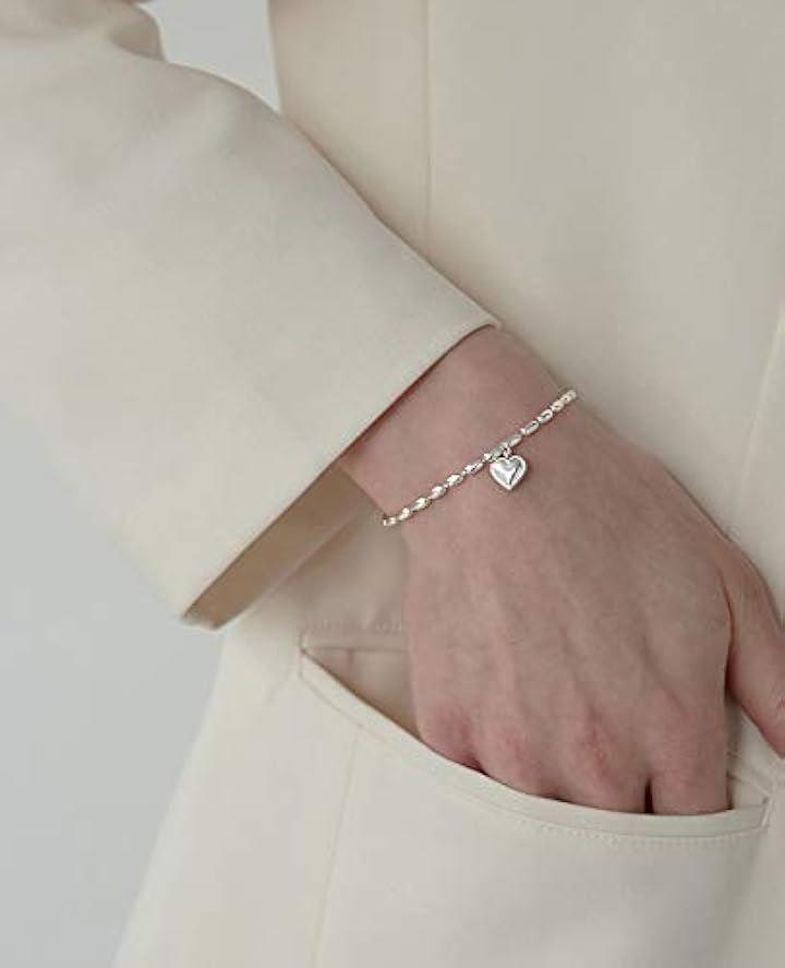手首にさりげなく揺れるハートが、キュートでありながらも大人の女性らしい上品さを演出します。