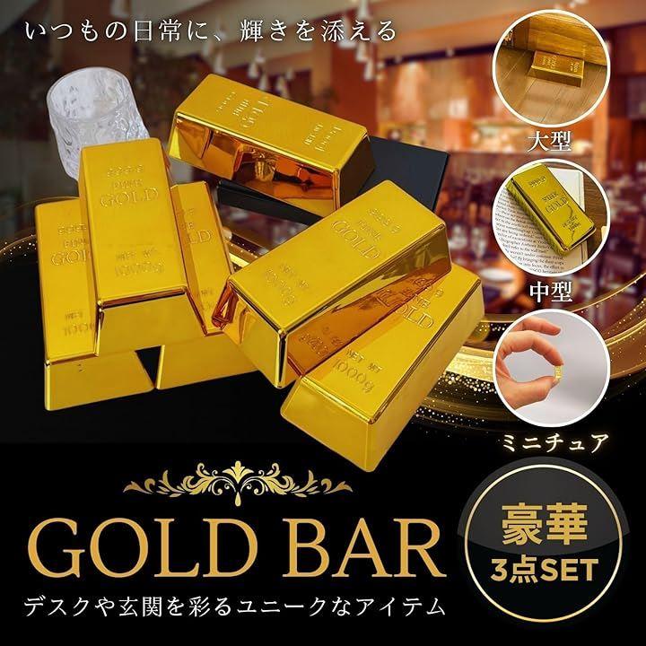 (1)豪華な3点セットで空間を演出 大小3種類のゴールドバーを揃えたセットは、置くだけで部屋やデスクの雰囲気を一気に華やかにしてくれます。