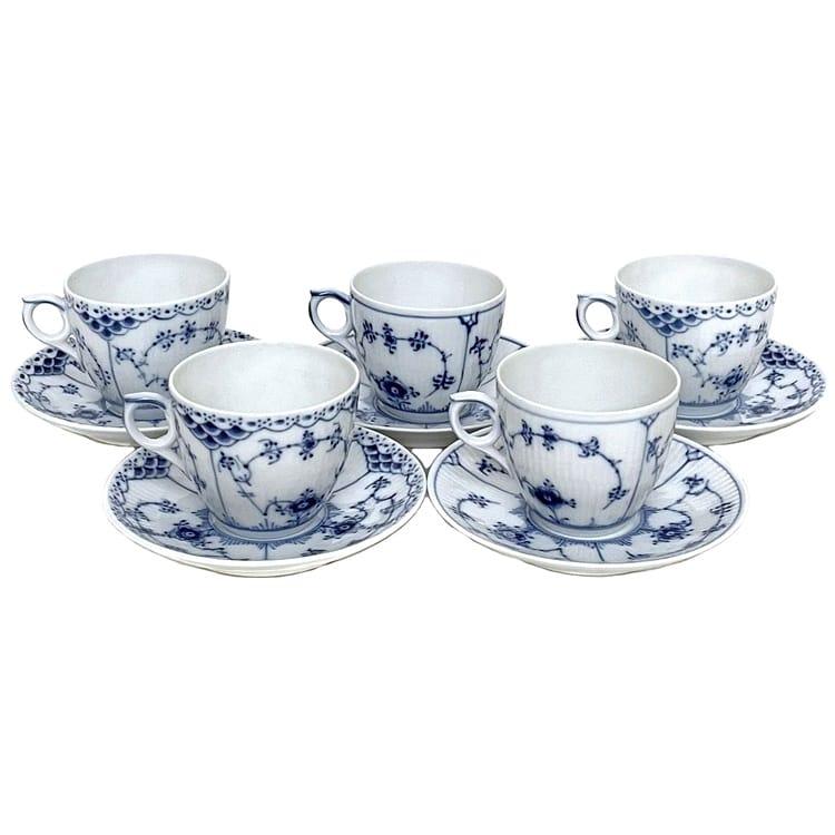 ☆---- 商品について ----☆ロイヤルコペンハーゲン カップ&ソーサー 5客 セット ec-23066 ホワイト ブルー ブルーフルーテッド ハーフレース 美品 陶器 中古 ROYAL COPENHAGEN レース柄 セット商品 ブランド食器 ティーカップ カップ ソーサー 食器 高級感 上品 ブランド 本物 鑑定済み