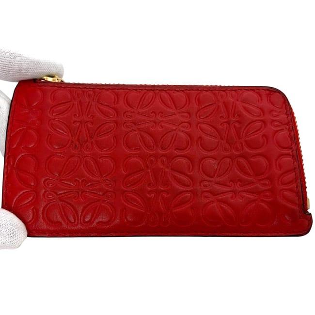 ☆---- 商品について ----☆ロエベ コインケース ec-24453 レッド リピートアナグラム C499Z40X04 L字 ファスナー レザー 中古 051703 LOEWE ロゴ 総柄 ファスナー カードホルダー 赤 メンズ レディース 男女兼用 エンボスロゴ ロゴ刻印 ゴールド金具 ミニ 財布 ブランド 本物 鑑定済み