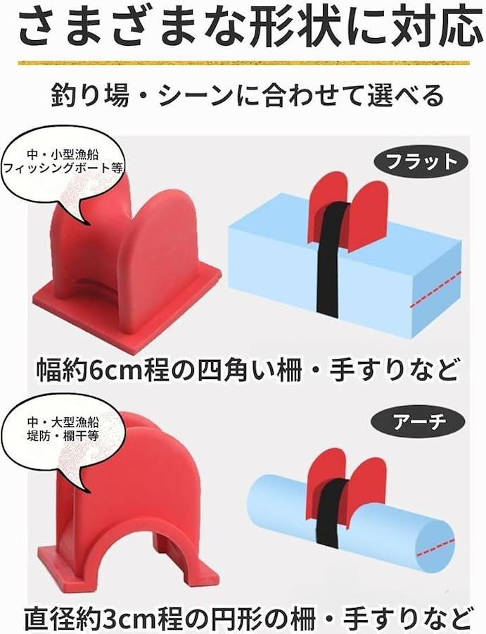 様々な形状にフィットしやすい構造となっており、竿の安定感を高めたい場面では複数個の併用もおすすめです。