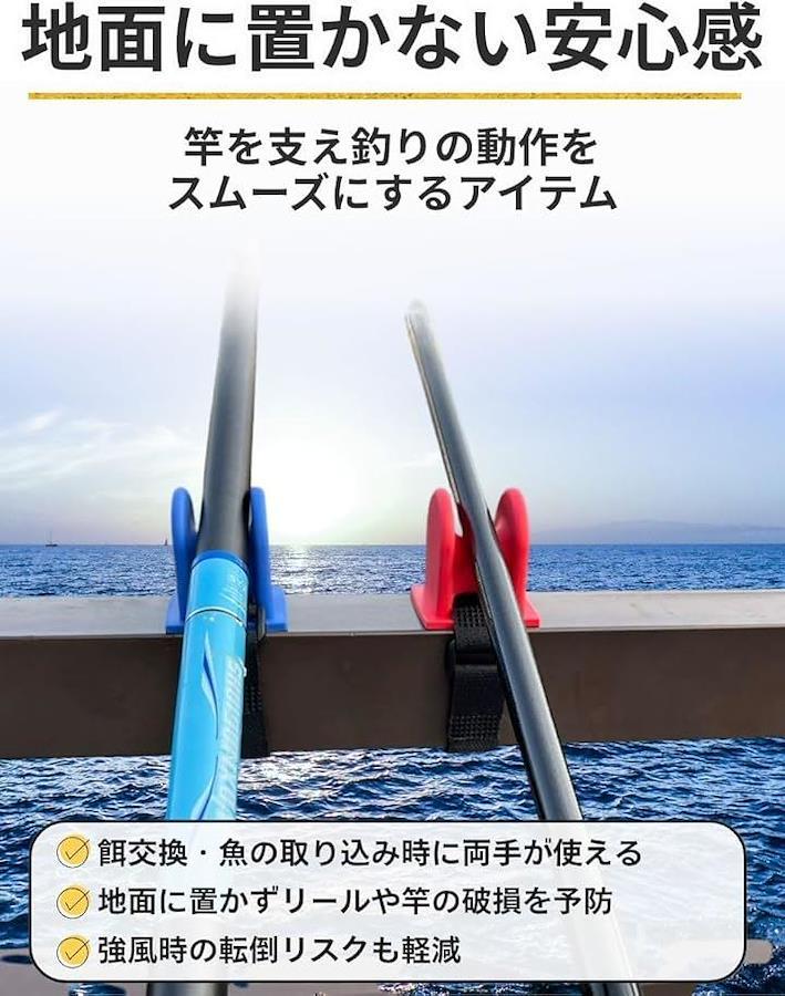 竿やリールを地面に置く必要がないため、傷や汚れを防ぎやすく、強風時の転倒リスクの軽減にもつながります。