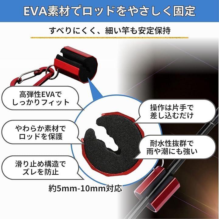 EVA素材のホールド部がしっかりと竿を支え、滑りにくい構造で安定性を確保できます。