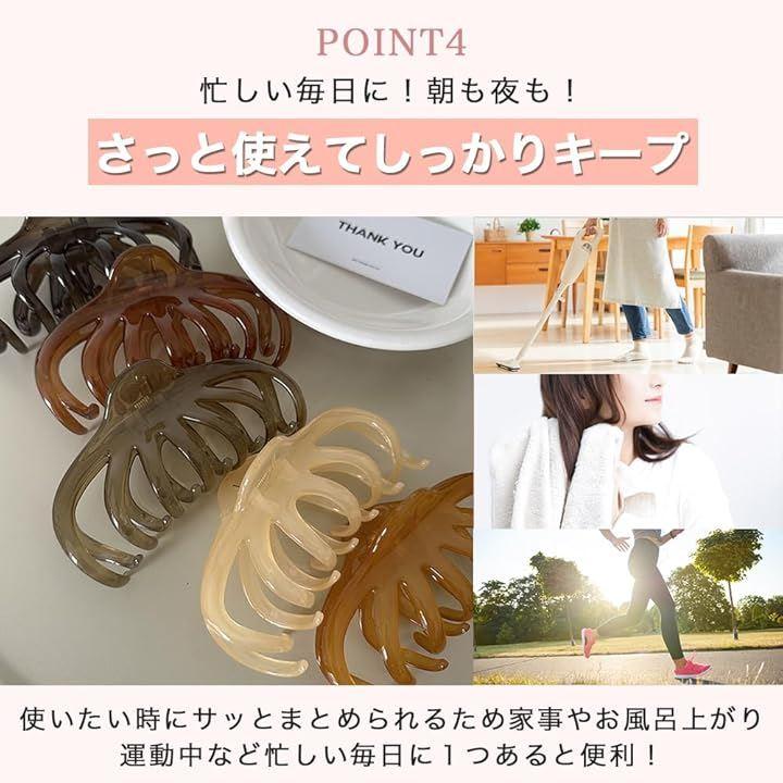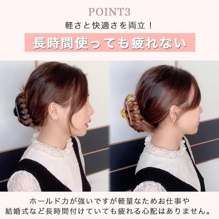 「量が多い髪も、軽くサッとまとめる」ホールド力が強いので髪の量が多い方でもしっかり留まるので髪を素早くまとめたい場面で役立ちます。