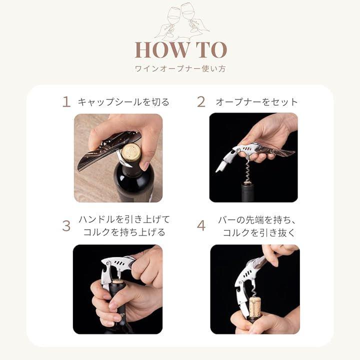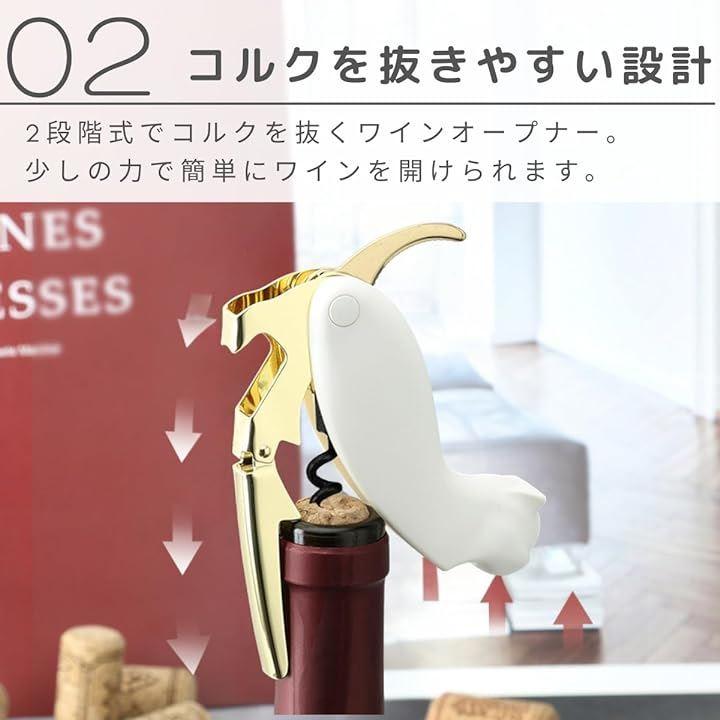 「コルクを抜きやすい設計」ソムリエナイフを使い慣れてない方や力の弱い方でも開けやすいように2段階式でコルクを抜くワインオープナー。