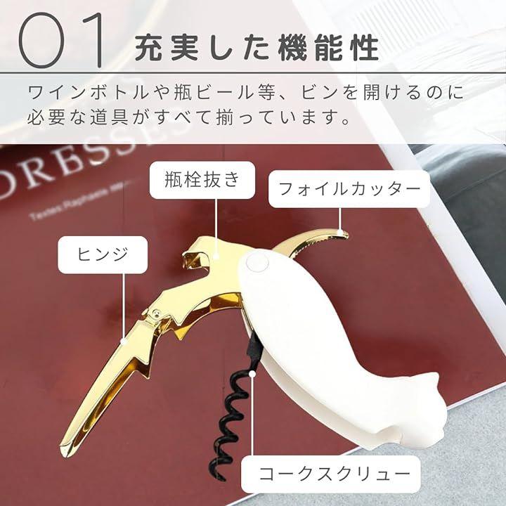 「機能性」コークスクリュー、ボトルオープナー(栓抜き)、フォイルカッターも搭載されワインボトルや瓶ビール等、ビンを開けるのに必要な道具がすべて揃っています。