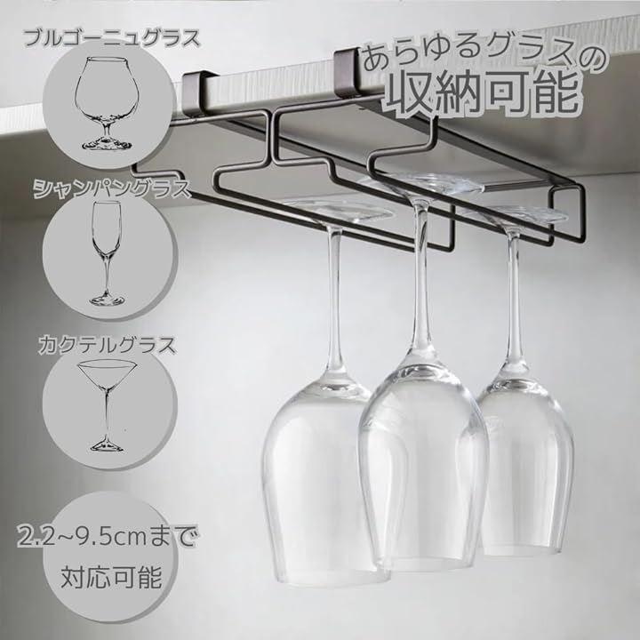 「あらゆるグラスの収納可」ブルゴーニュグラス、シャンパングラス、カクテルグラスなど、様々なタイプのグラスに対応しています。