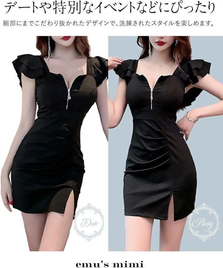 このドレスは、胸元に大胆なジッパーデザインを取り入れ、エレガントさとセクシーさを兼ね備えた一着です。