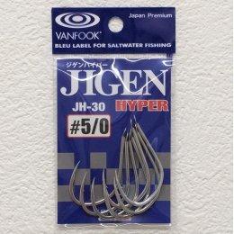 超軽量ジギングフック<ジゲン「JH-10」>のビッグサイズ・チューンバージョン。フックフォルムに対して極限まで細く、軽量に仕上げ ました。超鋭敏なフックポイントでフォール中の小さなアタリもしっかりと捉えます。線径、フックフォルムにこだわり抜いた「刺さりの良さ」を体感して下さ い。 注意!超細軸設計ですので、強引なパワーファイトには向きません。タックルバランスを考慮してお使い下さい。大型青物対応の#7/0を追加ラインナップ。