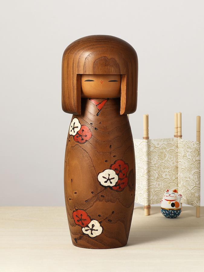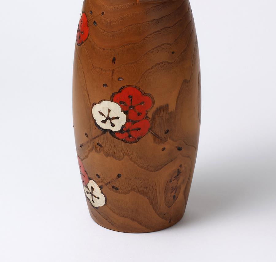 ★こけしカテゴリー:創作(そうさく)こけし(Sosaku kokeshi doll)★作者:卯三郎(うさぶろう)★デザイン:こちらは、梅の花模様が胴体に描かれたヴィンテージの卯三郎こけしです。シンプルなこけしですが、美しい木目のおかげで、とても上品で華やかな印象を与えます。