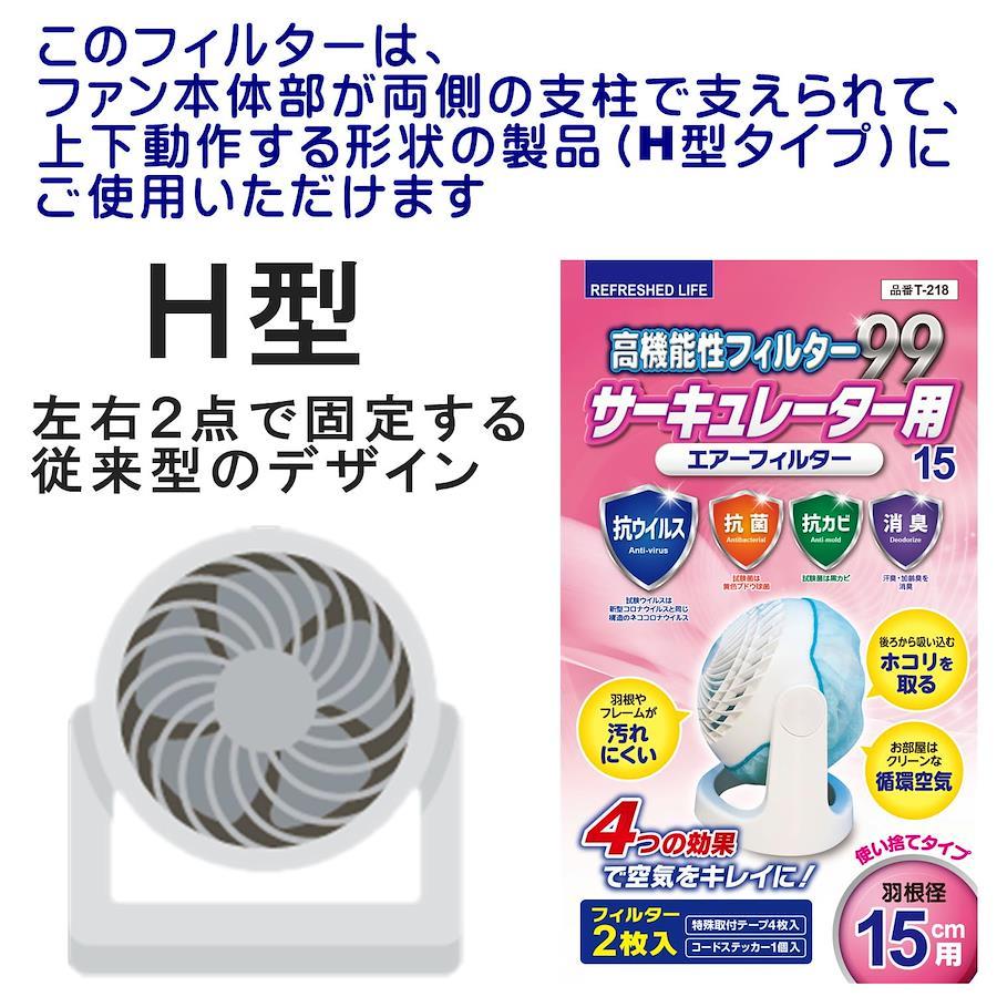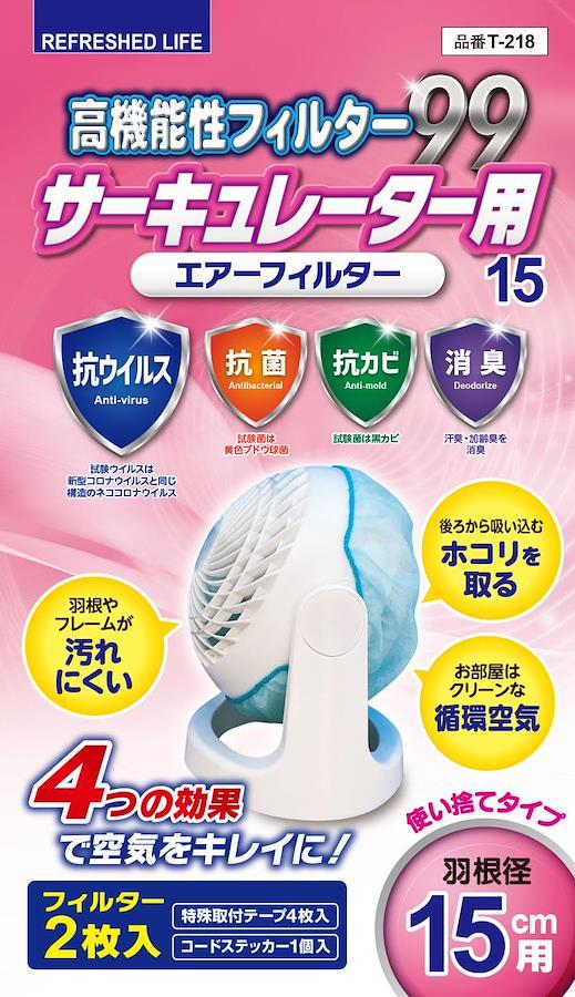 3営業日以内に発送≪新品未開封品≫:■高機能性フィルター99 サ-キュレ-タ-用 15・羽根径15㎝用・ファン本体部が両脇の支柱で支えられて、上下動作する形状の製品(H型タイプ)にご使用いただけます。・抗ウイルス・抗菌・効カビ・消臭の公的試験機関の効果評価試験のエビデンスを担保しています。・「ウイルス・雑菌・カビ」の繁殖を抑制し、安心で清潔なお部屋の空気をお届けします。「ホコリ」も防止してお掃除軽減!・抗ウイルス・抗菌・効カビ・消臭の高機能性フィルターはお部屋の空気をクリーンで爽やかに!・後ろから吸い込むホコリを取る!!羽根やフレームが汚れにくい!!お部屋はクリーンな循環空気!・ご覧頂いている商品の写真につきましては、できるだけ実物の色に近くなるように努めておりますが、お使いの環境(モニター、ブラウザ等)の違いにより、色の見え方が実物と若干異なる場合がございます。ご了承くださいませ。